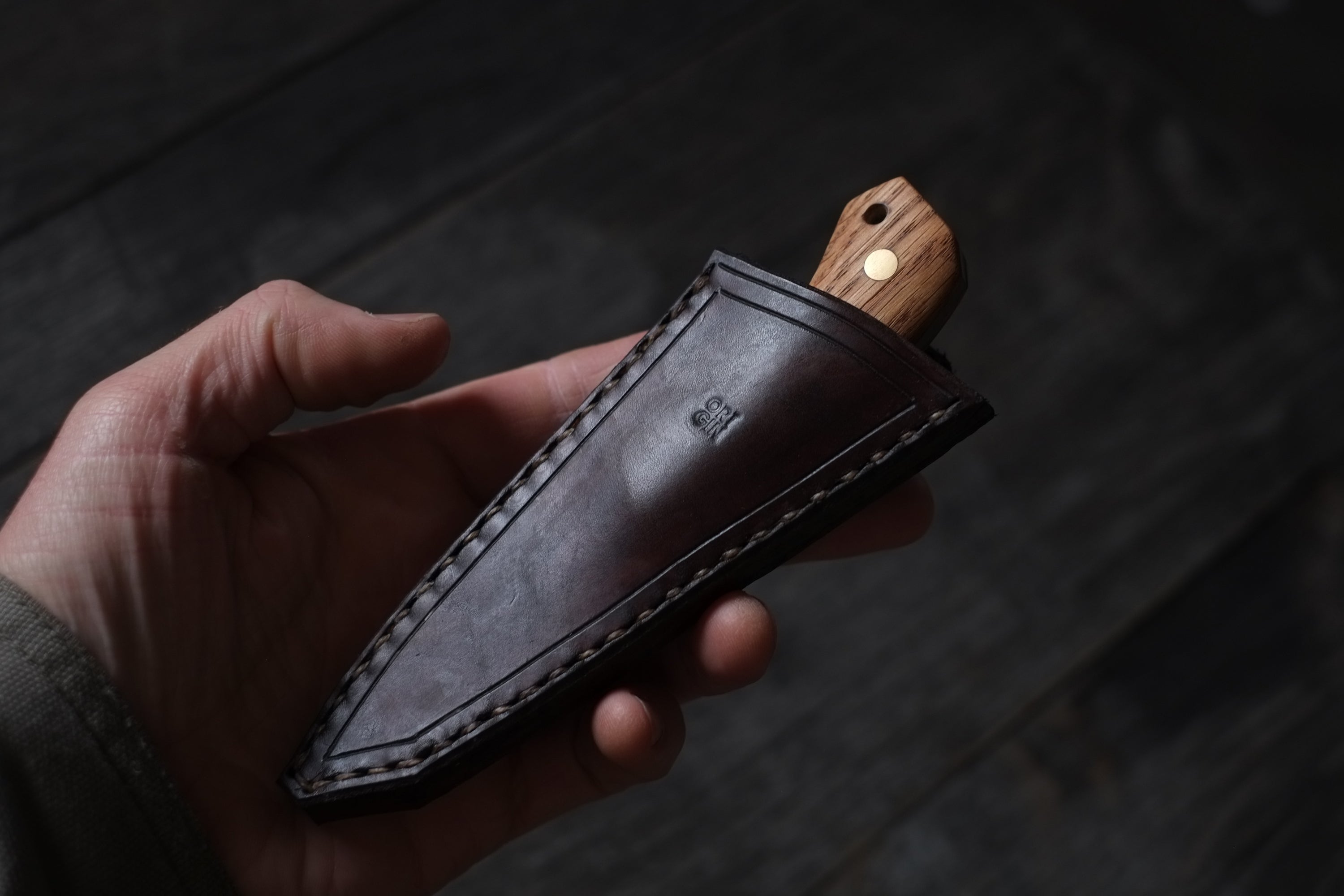 The Oaken is the only TILI that comes with a leather belt sheath — a pouch-style carry designed to keep the knife secure and accessible on your hip. Available in black or brown leather depending on your preference.