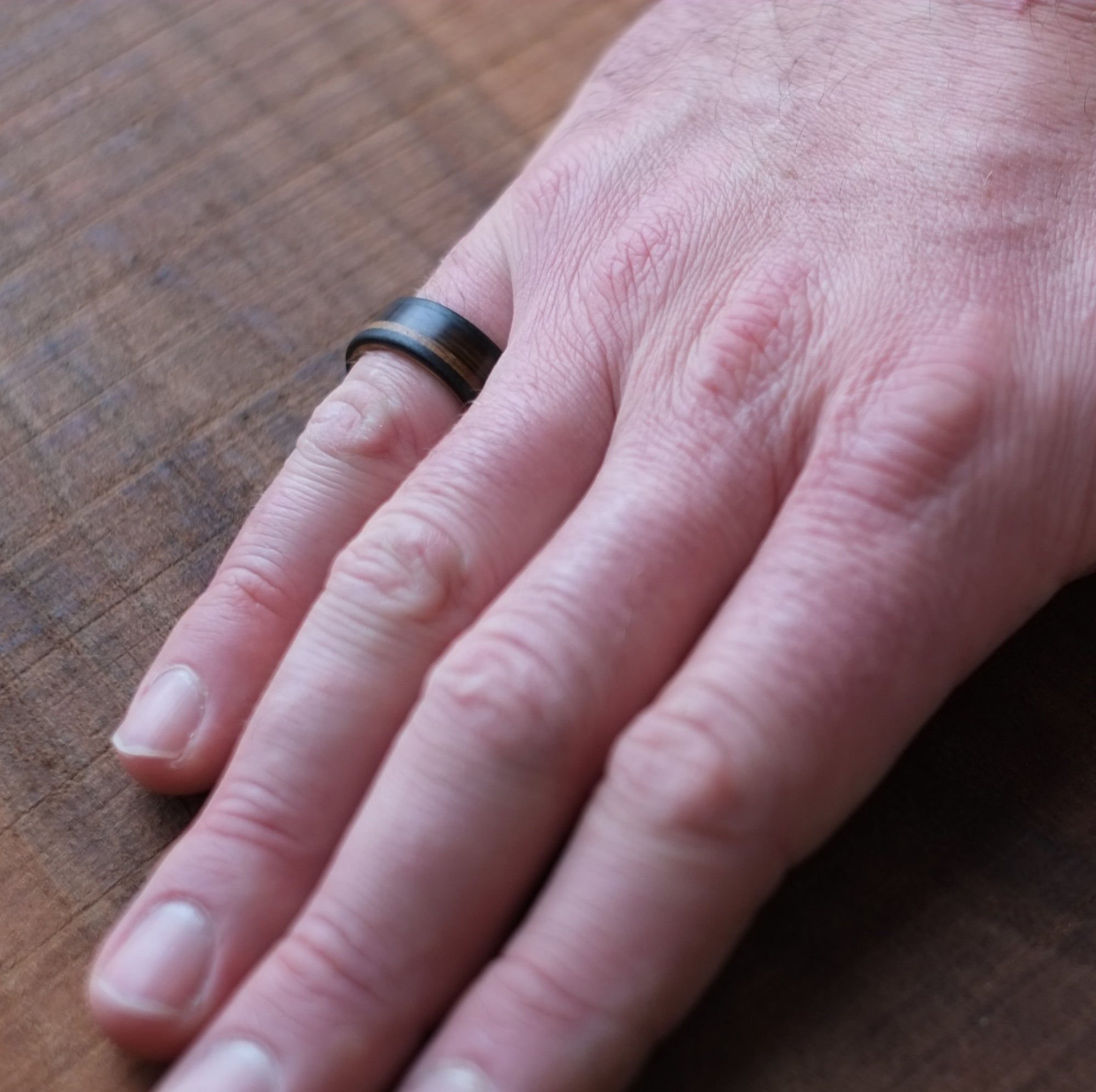 Because we use natural materials in our rings, your ring may not look exactly like the ring pictured. Every piece of horn we use has its own unique colour and grain pattern, which is what makes these rings so beautiful. Your ring will also age distinctly over time.
