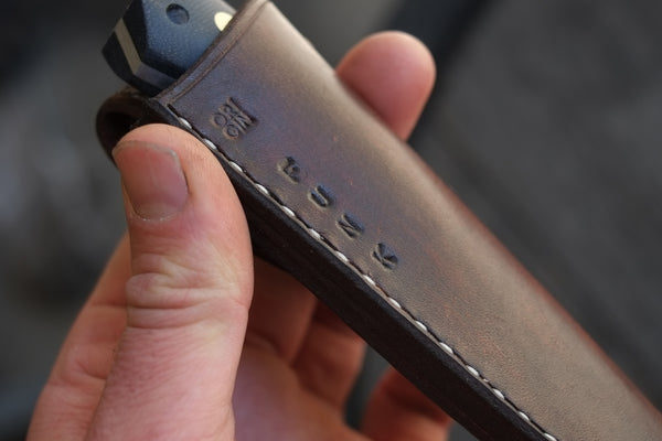 These TILI knives feature an ergonomic Micarta handle, held securely with durable brass bolts. It also is the only TILI version that comes with a leather pouch style sheath specifically built for carrying on your belt. The sheath comes in black or brown leather depending on your preference.