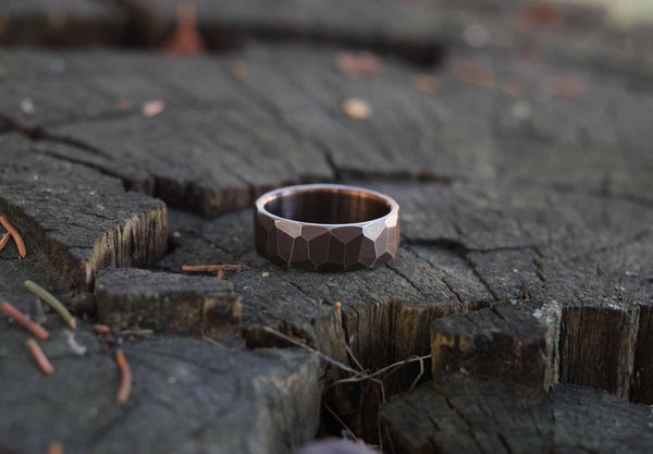 A multicolored anodized coating, created by applying intense heat, adds to the modern-yet-rustic style. This ring can also be crafted in a single tone, let us know which style you prefer when checking out.