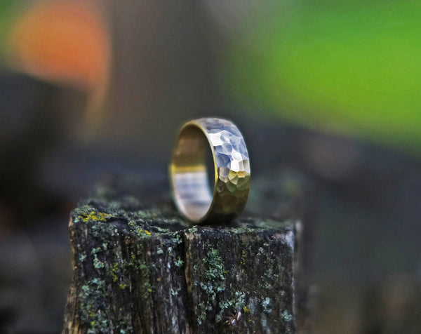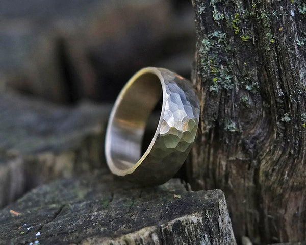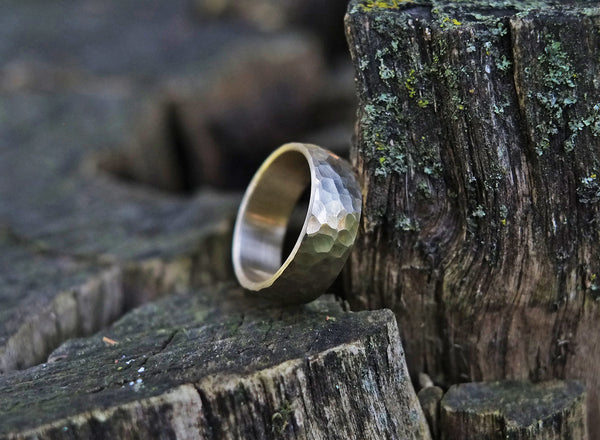 A classic design, slightly domed and hammered by hand, with a highly polished hammer for a subtle shine.